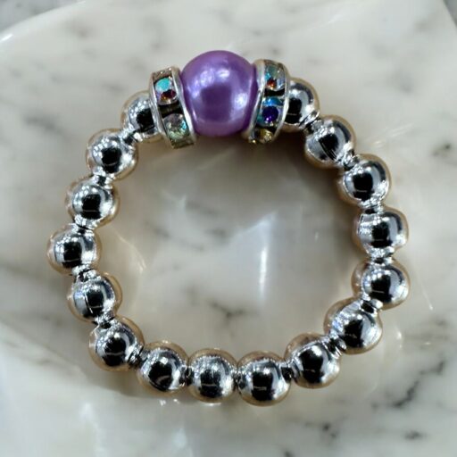 Infused with the magic of twilight skies and shimmering light, the Amethyst Aurora Ring features a luminous purple pearl centerpiece framed by a celestial spectrum of multicolored crystal accents. The silver bead band reflects elegance and clarity, making this ring a radiant expression of inner peace, intuition, and cosmic charm.